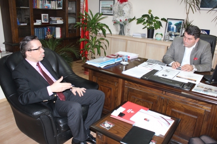 Ziyaretin sonunda Mustafa Karaman BİSİAD Başkanı Osman Akın’a plaket takdim etti.