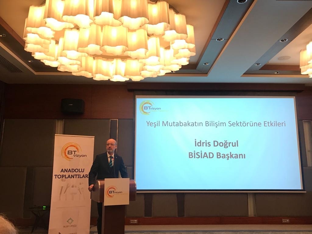 BT Vizyon Bursa Toplantısı’na BİSİAD – Bilişim Sektörü İş Adamları ve Profesyonelleri Derneği Yönetim Kurulu Başkanımız Sn. İdris DOĞRUL, “Yeşil Mutabakatın Bilişim Sektörüne Etkileri” konulu sunumuyla konuşmacı olarak katıldı.