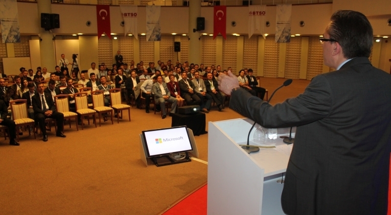 Bursa’da bilişim ile ilgili neler yapıldığı ve dünyadaki bilişim sektörünün gelmiş olduğu nokta hakkında fikirlerini paylaşan BİSİAD Başkanı Osman Akın, “Geleceği bilmek ve görmek açısından Microsoft’un teknolojileri ile buluşmak işletmelerimiz için son derece önemlidir. Dolayısıyla biz bu toplantıyı BİSİAD ve BTSO olarak son derece önemsiyoruz. Bursa, bilişim ile ilgili neler yapıyoruz diye bakacak olursak, aslında son iki yılda önemli gelişmeler kat ettiğimizi düşünüyorum. Bursa, ‘Yazılım Vadisi’ projesi ile bilişim kenti olma yolunda önemli bir yol kat etti. Bilişime bu kadar önem vermemizin sebebi hayatımızın her alanında kullanıyor olmamızdır. BTSO ile birlikte yürüttüğümüz ‘Uzay Havacılık ve Savunma Sanayi gibi kümelenme çalışmalarımıza bakacak olursak çalışmanın zemininde yazılım var. Ayrıca işin en katma değerli tarafı da yazılım” şeklinde konuştu. Bursa’nın sadece otomotiv ve tekstil kenti olarak bilinmesini istemediklerini vurgulayan Akın, BTSO ile birlikte Bursa’yı bir yazılım kentine dönüştürmek konusunda tüm çalışmaların devam ettiğini söyledi.